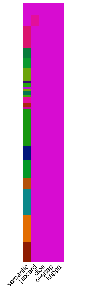 Figure 1. Binary clustering on similarity matrices from different measures.